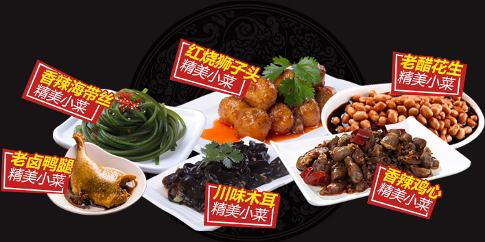 香辣海帶絲|紅燒獅子頭|川味木耳|老醋花生|老鹵鴨腿|魚香肉絲|香辣雞心